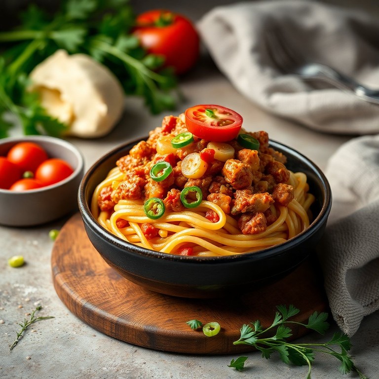 Tazón de Fideos con Carne y Porotos