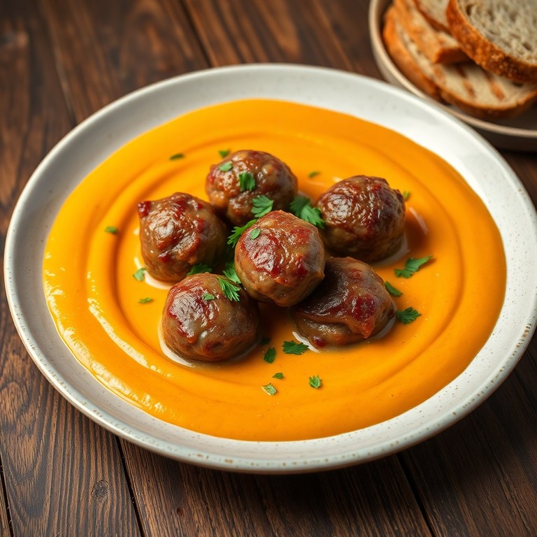 Boulettes de Boeuf en Sauce Crémeuse à la Purée de Carottes