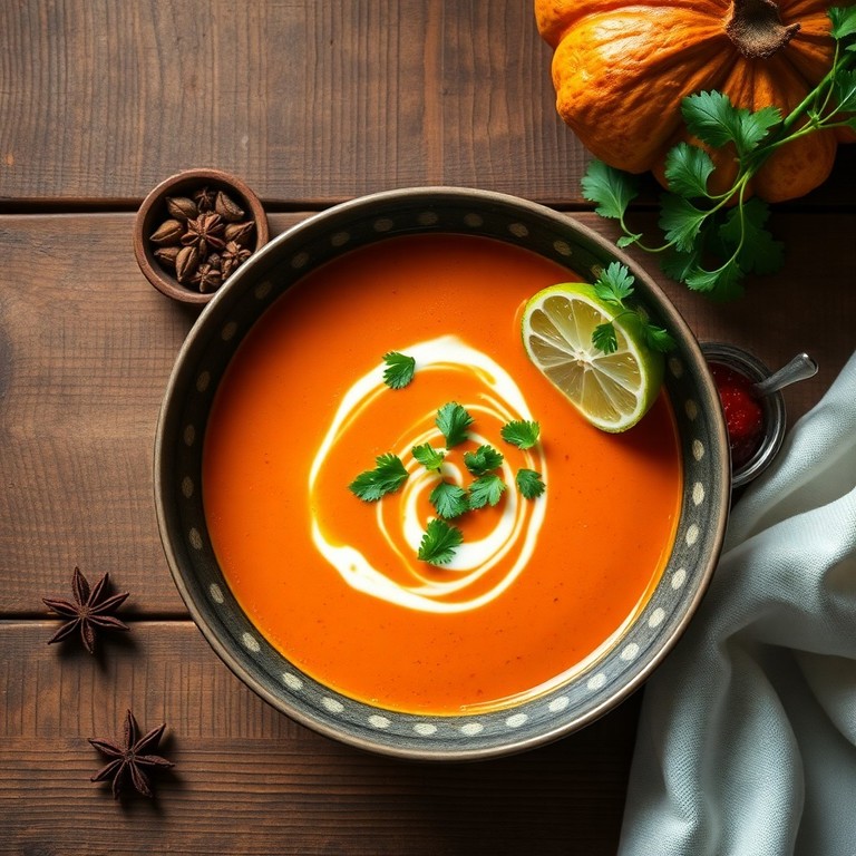 Soupe de Potiron au Curry Rouge et Coriandre