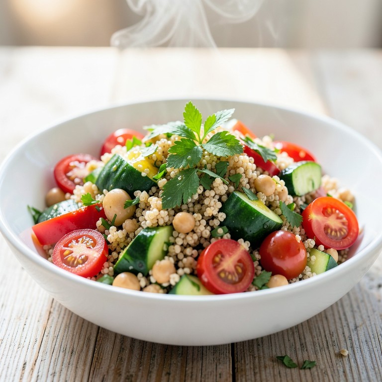 Salada Rápida de Quinoa com Grão de Bico e Ervas Frescas