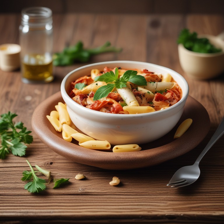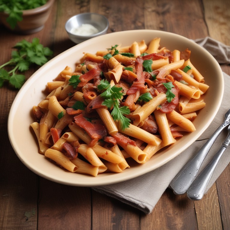 Macarrão Pene com Bacon e Molho de Tomate
