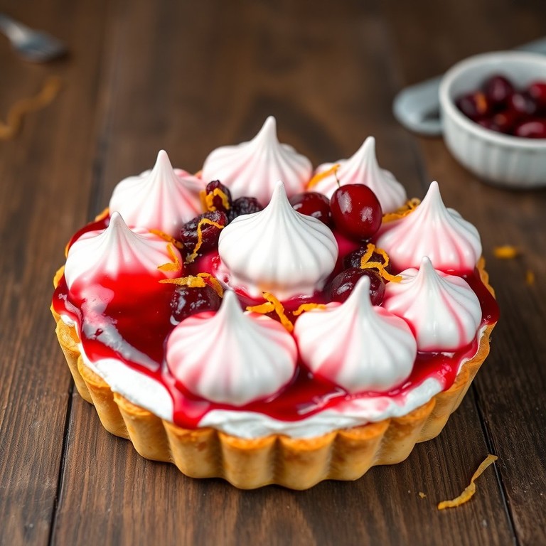 - Меренговый тарт с вишневым ликёром и брусничным джемом