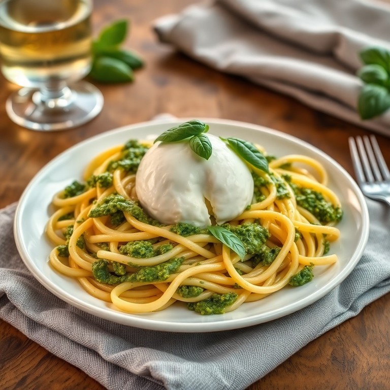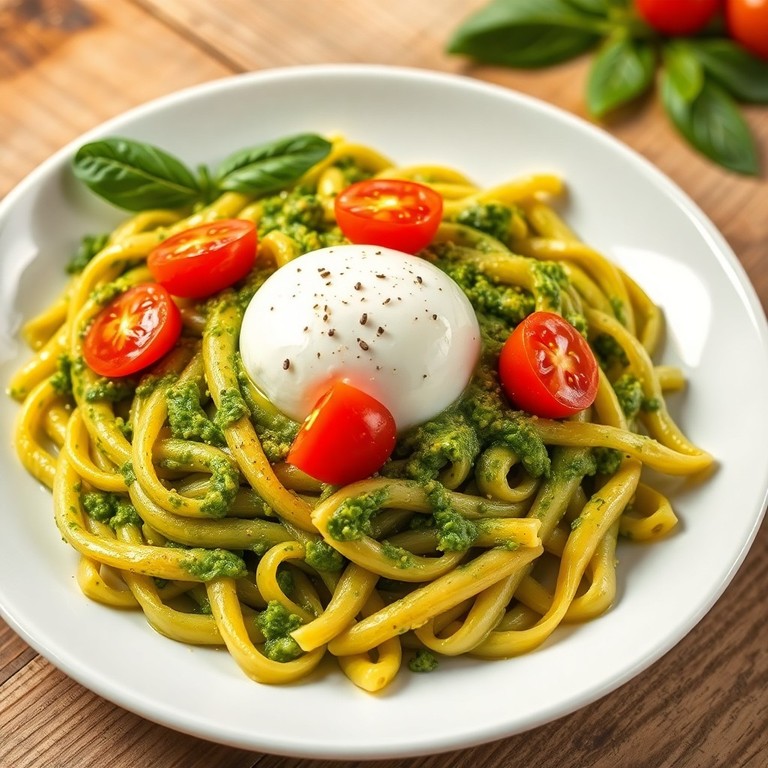 Pâtes aux saveurs méditerranéennes avec burrata et pesto