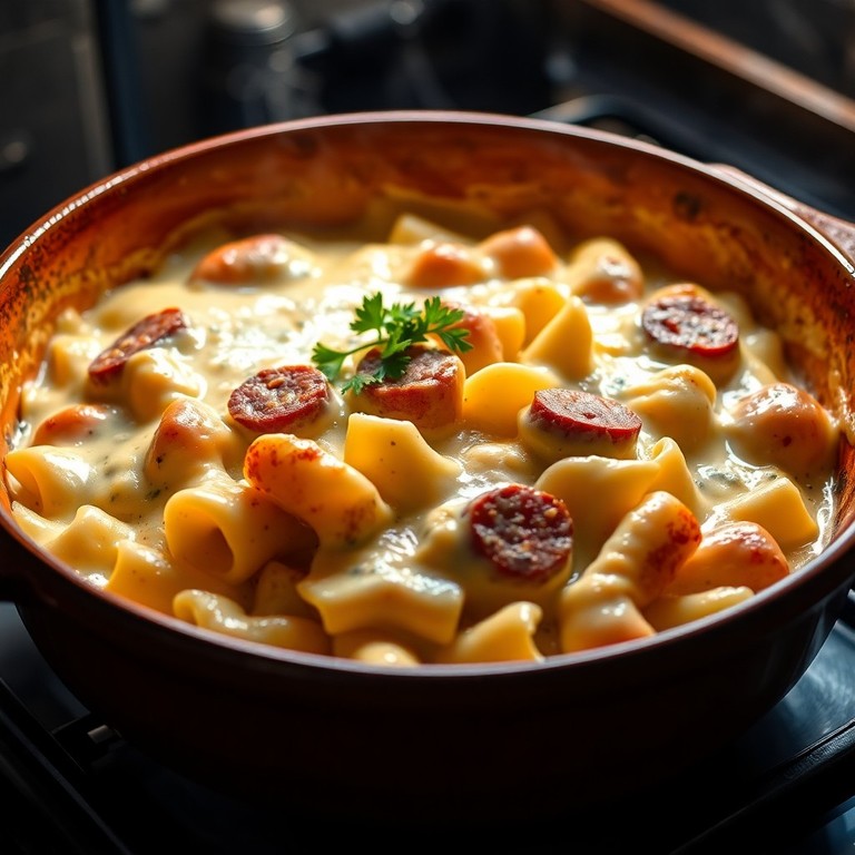 Macarrão Gratinado com Salsicha ao Molho Branco