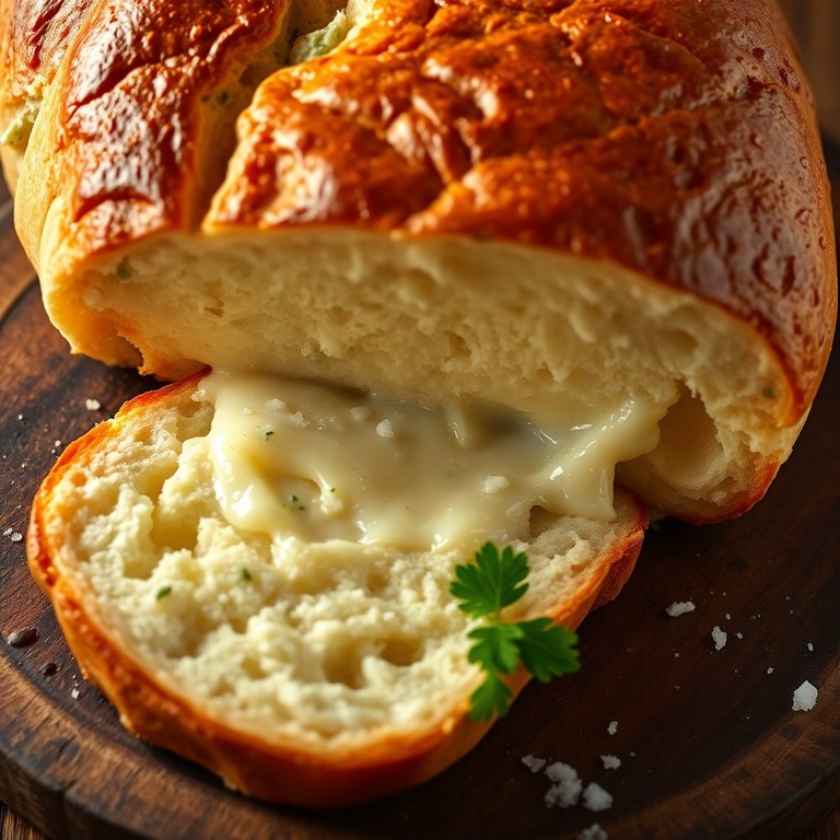 Pão de Leite Artesanal Recheado com Alho, Catupiry e Mussarela