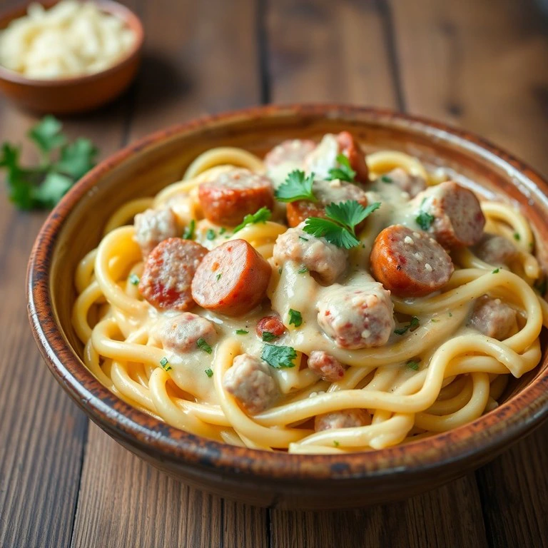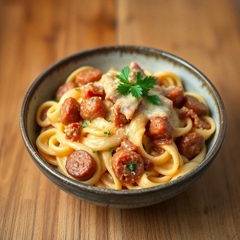 Macarrão Cremoso com Linguiça e Presunto