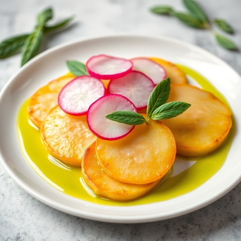 Pastinaakmedaillons met ingelgde radijs en salieolie
