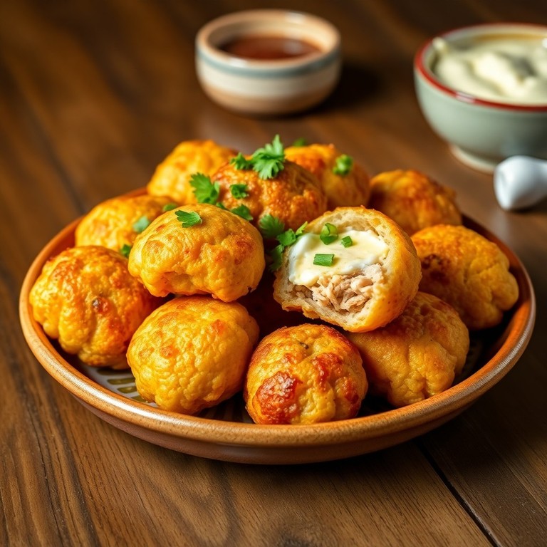 Bolinho de Tapioca com Recheio de Frango e Ovo Cozido