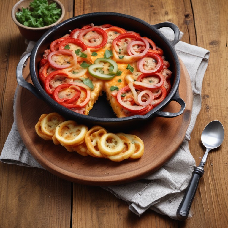 Zwiebelmettwurst-Paprika-Tomaten-Auflauf mit Käse