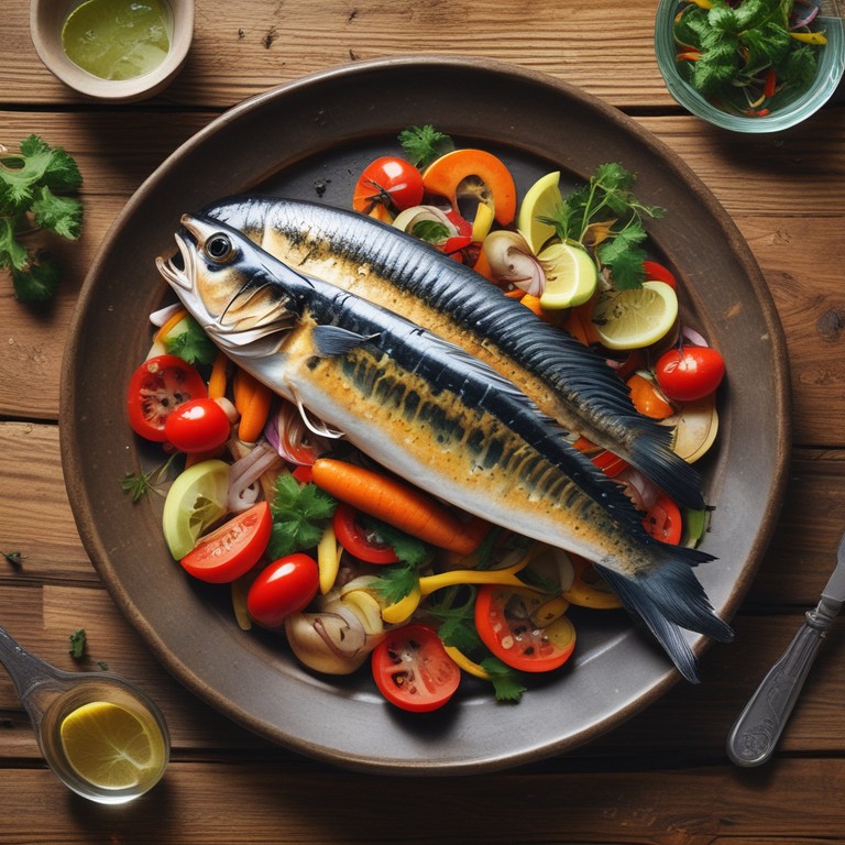 Peixe Cavalinha Grelhado com Legumes e Molho de Limão