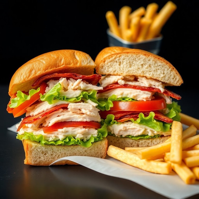 Sándwich Club Clásico con Pollo, Tocino y Vegetales Frescos