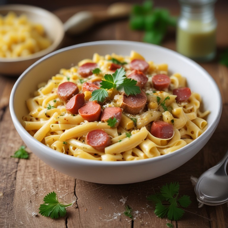 Macarrão Cremoso com Linguiça e Milho