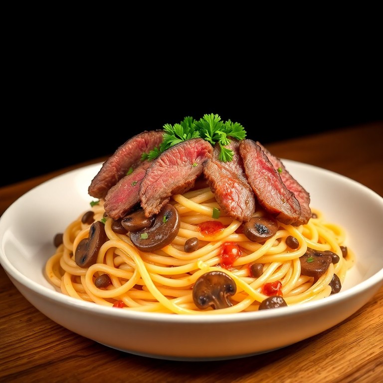 Fettuccine com Maminha ao Molho Cremoso de Cogumelos