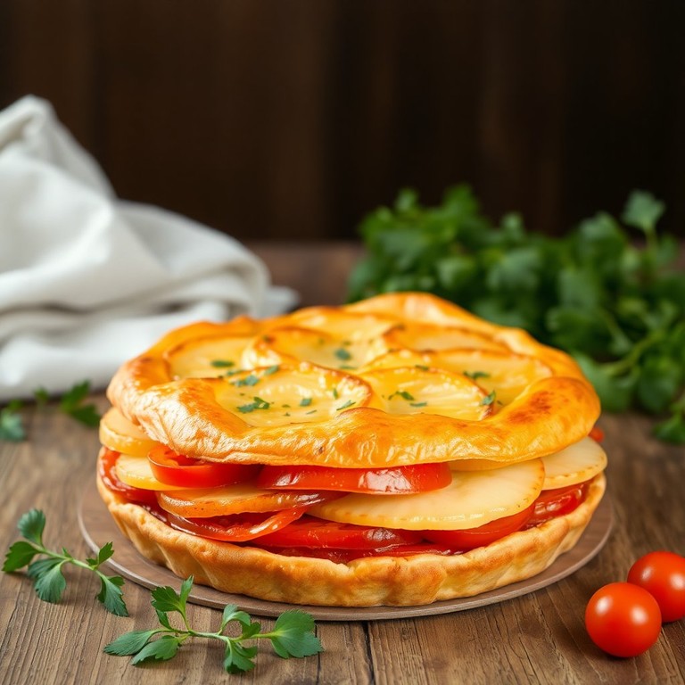 Torta Rústica de Tomate e Batata com Camadas Saborosas
