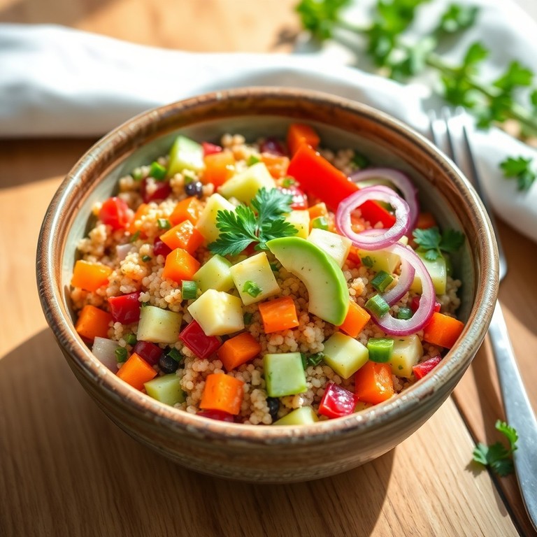 Ensalada fresca de quinoa con vegetales orgánicos y vinagreta de limón