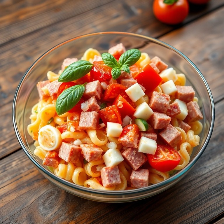 Salada de Macarrão com Mortadela e Tomates Frescos