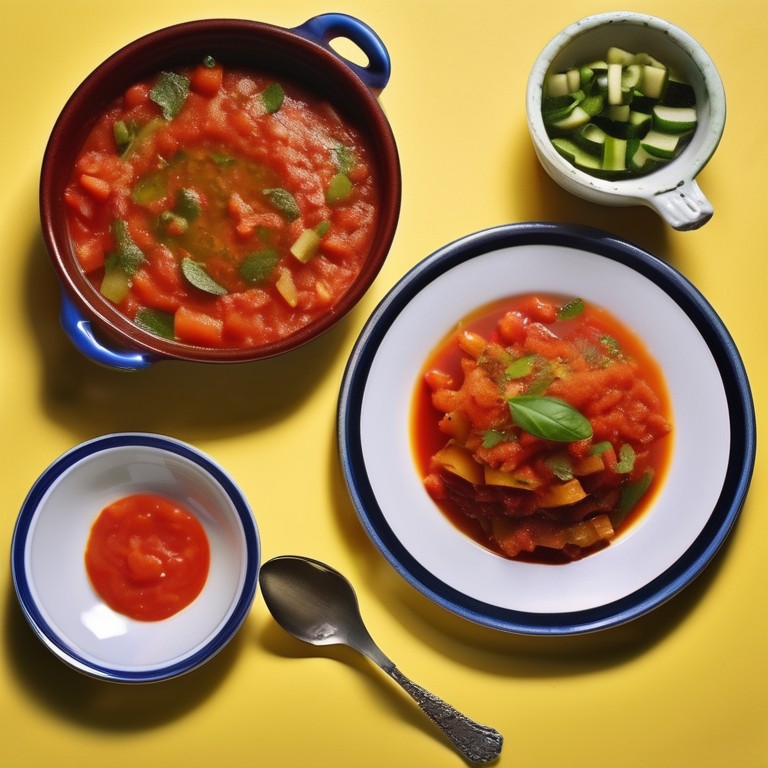 Un plato sabroso y reconfortante de calabacín cocido con una rica salsa de tomate y cebolla.