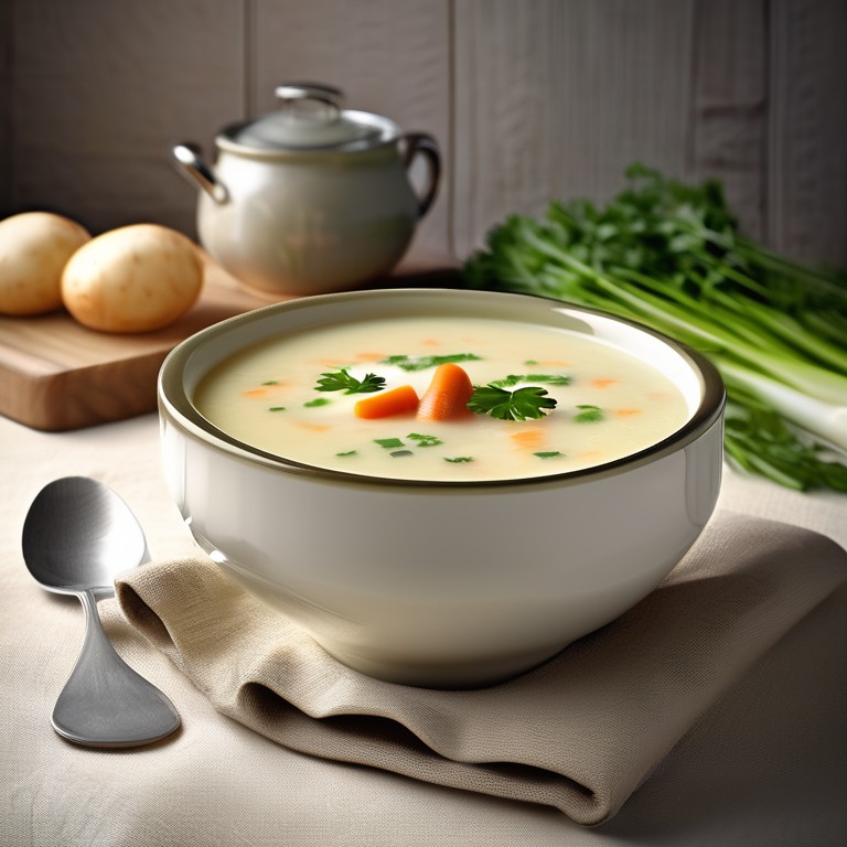 Une délicieuse soupe savoureuse et réconfortante, idéale pour se réchauffer par temps froid. Les poireaux, oignons, carottes et pommes de terre se combinent pour créer une soupe riche en saveurs et textures.