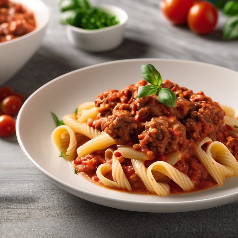 Uma deliciosa e reconfortante receita de macarrão com carne moída, frango, cebola, creme de leite e molho de tomate. Perfeito para uma refeição quente e satisfatória!