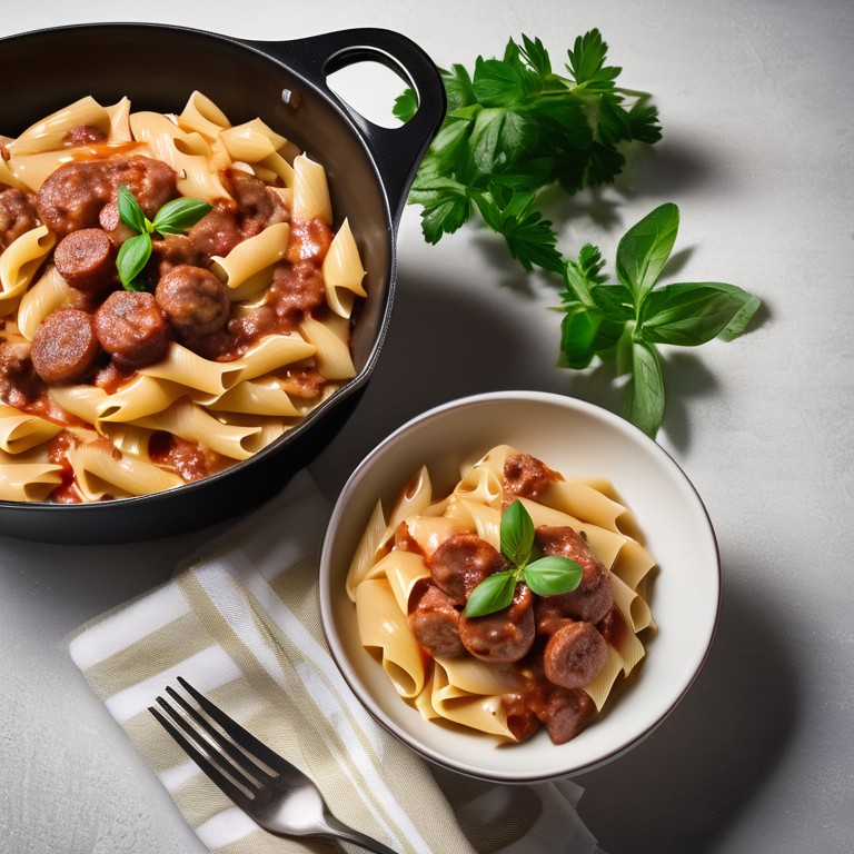 Um prato de macarrão delicioso e reconfortante, com requeijão cremoso e calabresa saborosa, perfeito para uma refeição acolhedora em família.