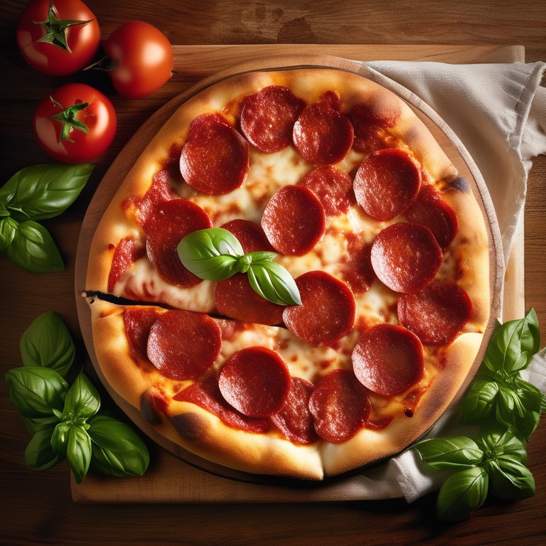 A classic and delicious recipe for homemade pepperoni pizza with a crispy crust and savory toppings.