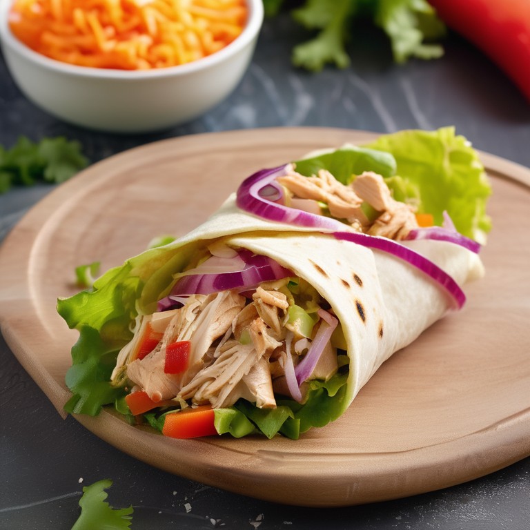 Um delicioso wrap saudável com frango e vegetais frescos, perfeito para um almoço leve ou lanche saboroso.