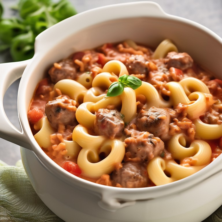 Uma deliciosa e reconfortante receita de macarrão com queijo e salsicha em um molho cremoso de tomate e sardinha, perfeita para uma refeição acolhedora em família.