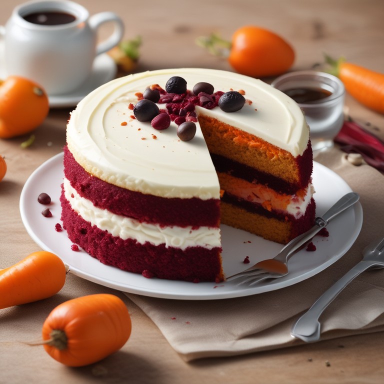 Um bolo único feito com a combinação inusitada de cenoura, café e beterraba. Uma mistura surpreendente de sabores e texturas que resulta em um bolo delicioso e nutritivo.