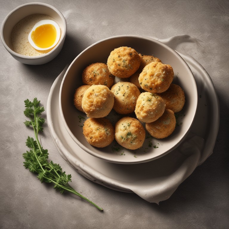 Delicioso bolinho crocante feito com farinha, ovo e oregano, perfeito para um lanche rápido e saboroso.