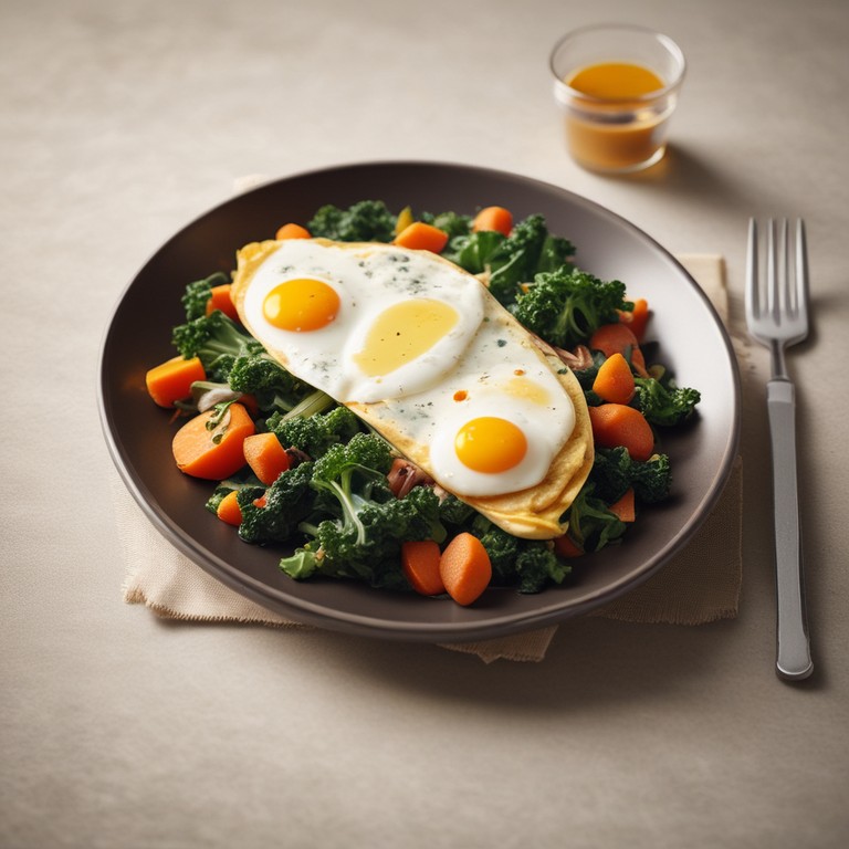 Uma omelete saudável e deliciosa feita com ovos, cenoura e couve fresca.