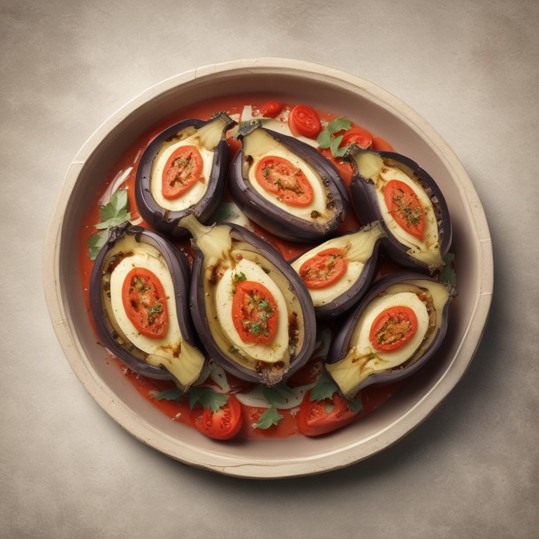 Uma deliciosa receita de berinjela recheada com queijo e tomate, perfeita para um jantar leve e saboroso.