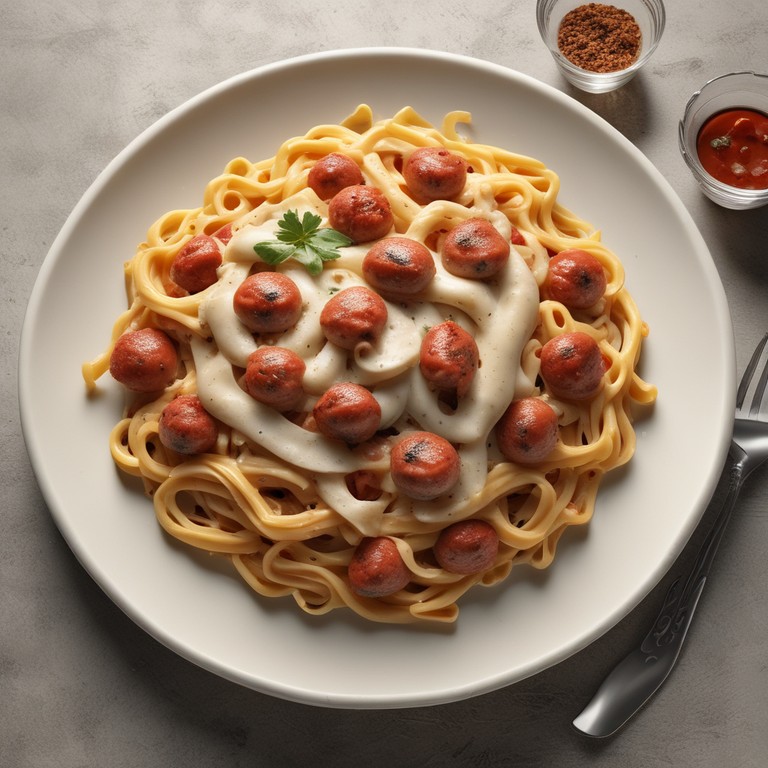 Este prato de macarrão com calabresa e creme de leite é uma combinação perfeita de sabores. A cremosidade do creme de leite se mistura com o sabor defumado da linguiça calabresa, criando uma refeição reconfortante e saborosa. É uma opção simples e rápida para um almoço ou jantar em família. A salsinha fresca adiciona um toque de frescor ao prato, tornando-o ainda mais irresistível.