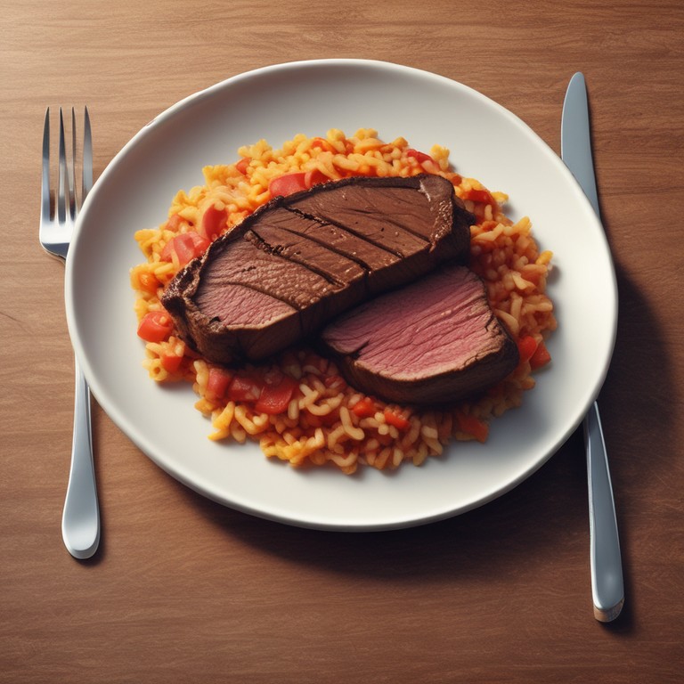 Este prato brasileiro combina a suculência do bife de músculo com a leveza e sabor do arroz de tomate. Uma refeição reconfortante e cheia de sabor para toda a família.