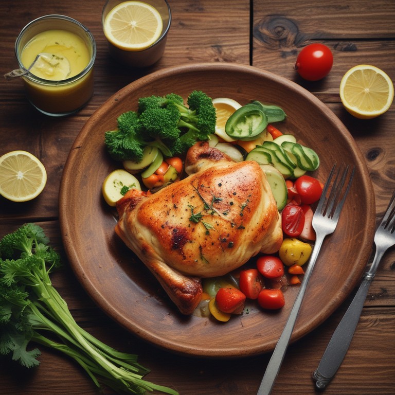 Pollo Asado con Verduras Frescas y Limón