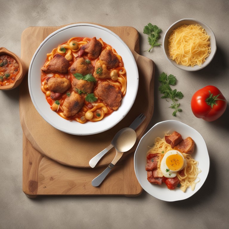 Esta receita de Macarrão à Frango com Bacon e Molho de Tomate é uma combinação deliciosa e reconfortante, perfeita para um almoço em família ou um jantar especial. O frango suculento, o bacon crocante e o molho de tomate rico se juntam para criar um prato que certamente agradará a todos. Sirva com queijo parmesão e salsinha para um toque extra de sabor!