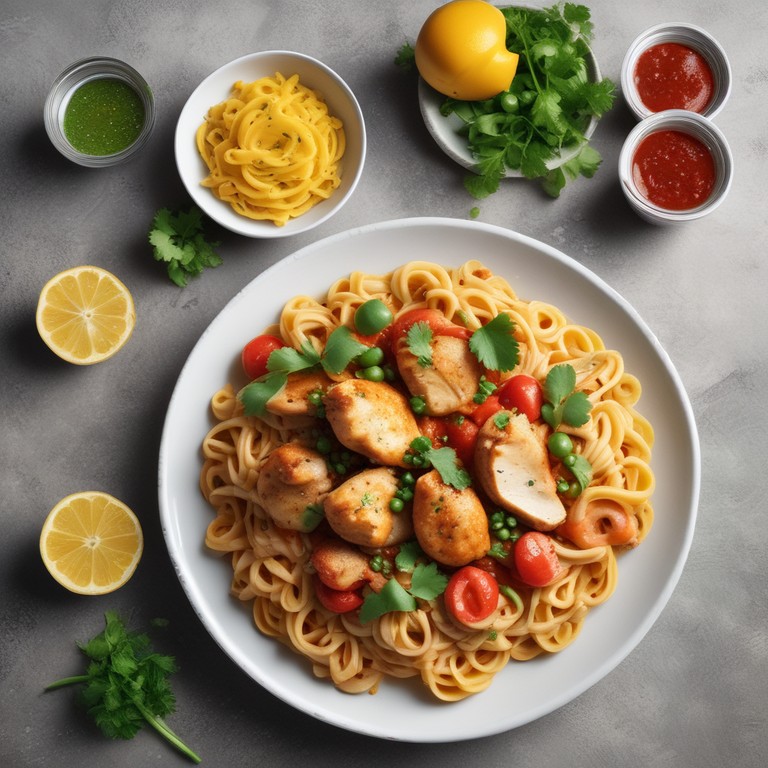 Pasta con Pollo y Guisantes en Salsa de Tomate