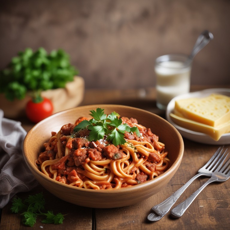Macarronada Cremosa com Carne Moída e Molho de Tomate