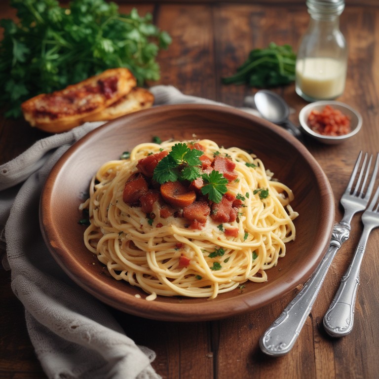 Espaguete Cremoso com Bacon, Calabresa e Ricota