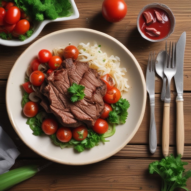 Esta receita de Carne de Boi Acebolada com Tomate e Ervas é uma deliciosa opção para um almoço ou jantar. A carne é selada e cozida com cebolas, tomates frescos e temperos, resultando em um prato suculento e cheio de sabor. Ideal para acompanhar arroz e feijão, é uma refeição que traz o sabor da culinária brasileira para a sua mesa.