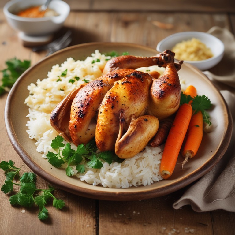 Esta receita de Frango Assado com Batatas, Cenouras e Arroz é uma refeição completa e saborosa, perfeita para um almoço em família. O frango é marinado e assado até ficar suculento, enquanto as batatas e cenouras ficam macias e saborosas. O arroz complementa o prato, tornando-o ainda mais delicioso.