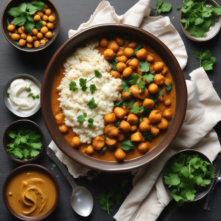 Himachali Dham is a traditional feast from the Himachal Pradesh region of India. This vegetarian meal features Chana Madra, a chickpea dish cooked in a rich yogurt sauce, and Aloo Palda, a potato curry with yogurt and coconut. It's a flavorful and hearty meal perfect for any occasion.