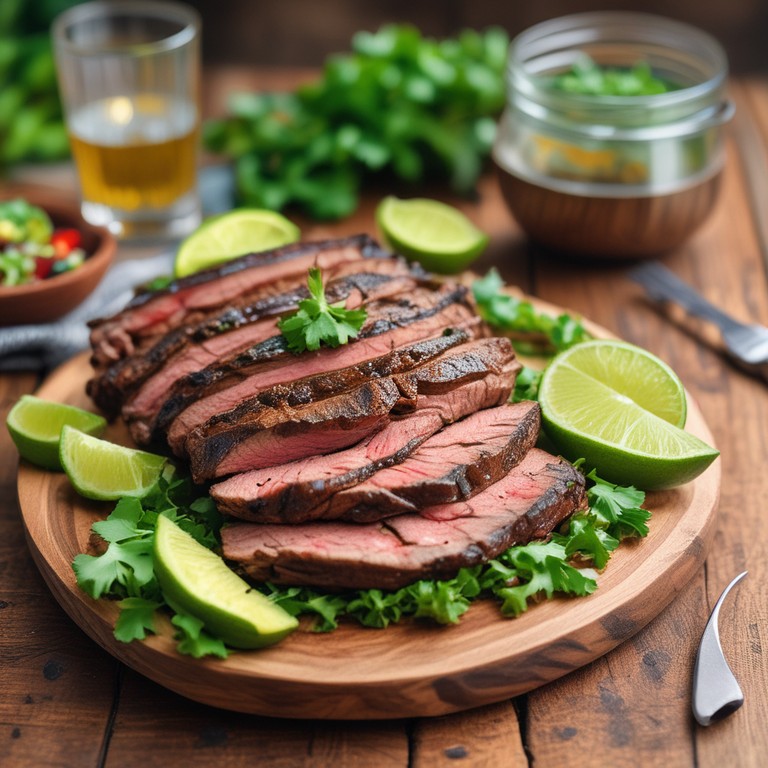 Esta receta de carne asada es perfecta para una parrillada con amigos o familiares. La carne se marina en una mezcla de especias y jugo de limón, lo que le da un sabor increíble. La salsa de aguacate complementa perfectamente la carne, añadiendo frescura y cremosidad.