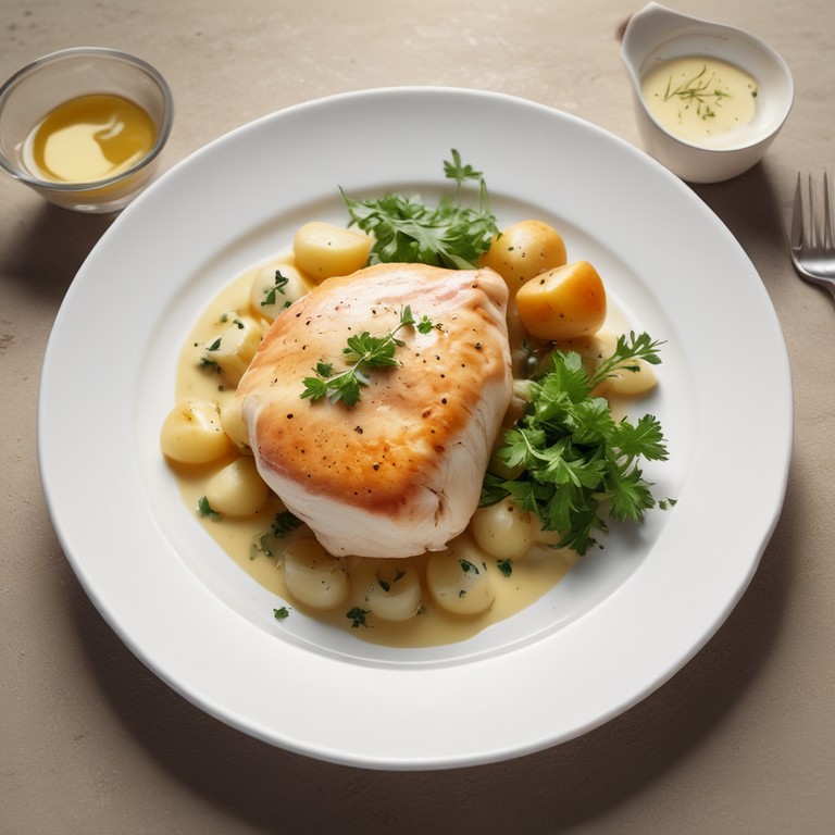 Pechuga de Pollo a la Crema con Papas y Salsa