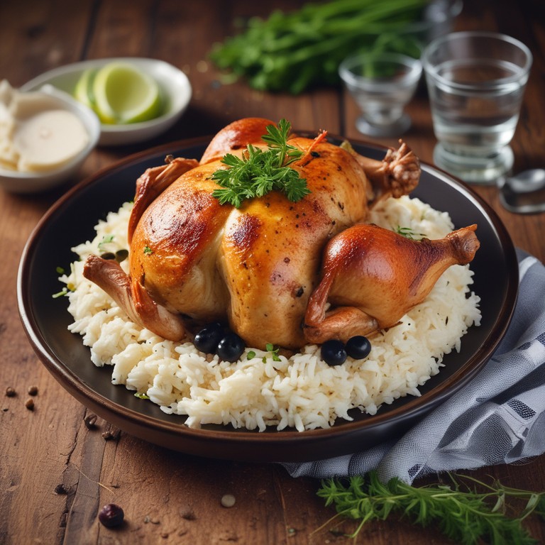 Este delicioso pollo al horno es perfecto para una comida familiar, acompañado de arroz sazonado que le da un toque extra de sabor, ideal para compartir con amigos y seres queridos.