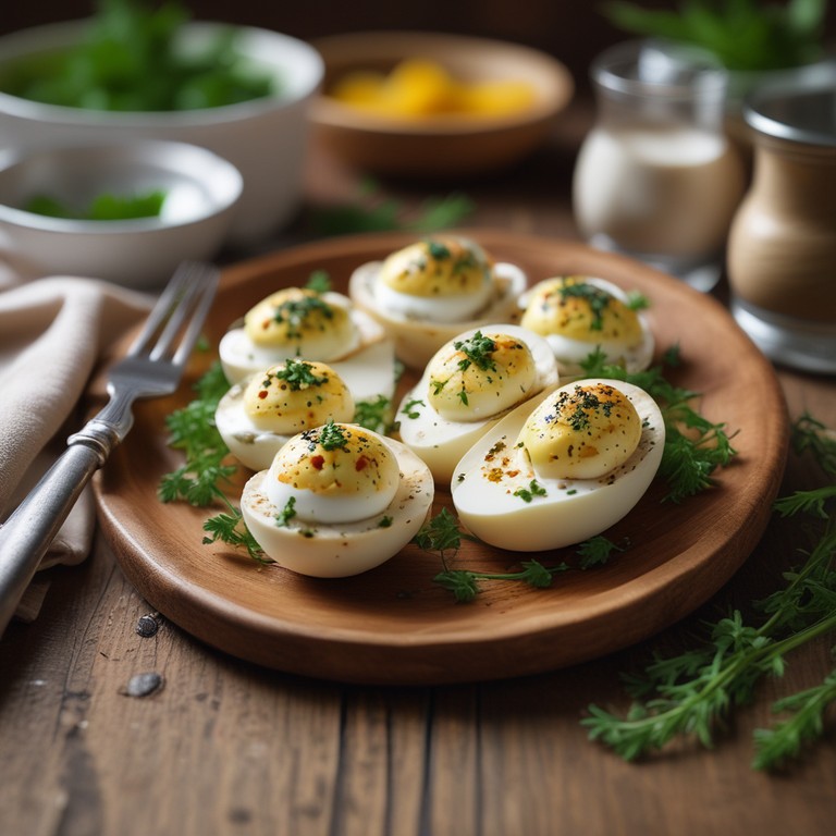 Uma deliciosa receita de ovos recheados com uma mistura cremosa de cream cheese e ervas, perfeita para aperitivos ou entradas em festas.