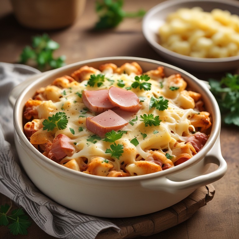 Um prato reconfortante e saboroso, perfeito para um almoço em família ou um jantar especial. O macarrão gratinado combina a cremosidade do queijo com a textura das batatas e o sabor do presunto, criando uma refeição deliciosa e satisfatória.
