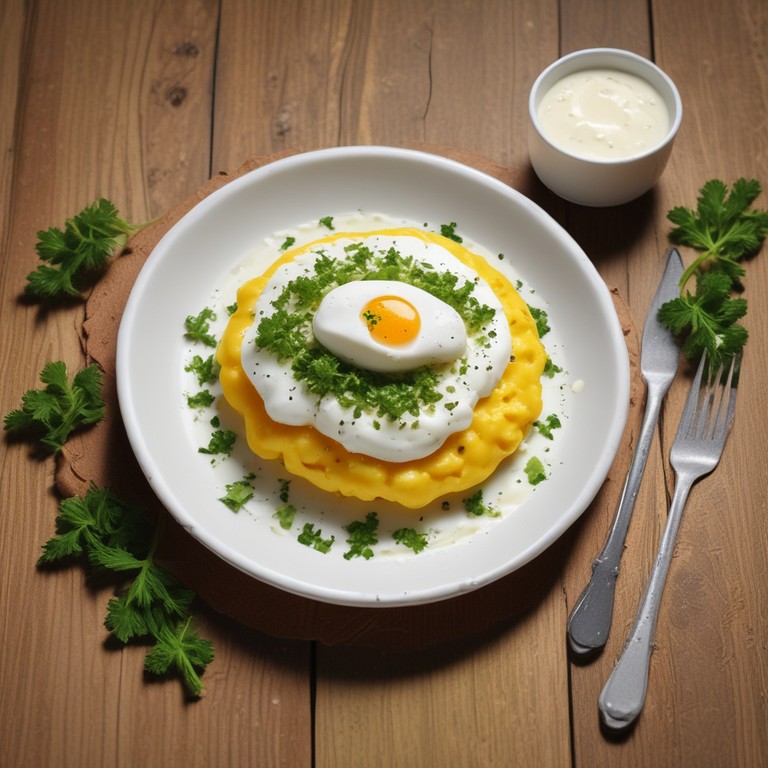 Uma deliciosa tapioca recheada com queijo coalho e ovos, acompanhada de iogurte natural, perfeita para um café da manhã ou lanche.