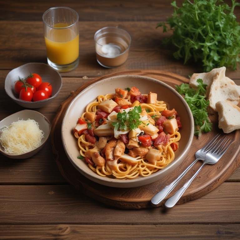 Um prato saboroso e reconfortante que combina frango suculento, bacon crocante e um molho de tomate fresco, perfeito para um almoço ou jantar em família.