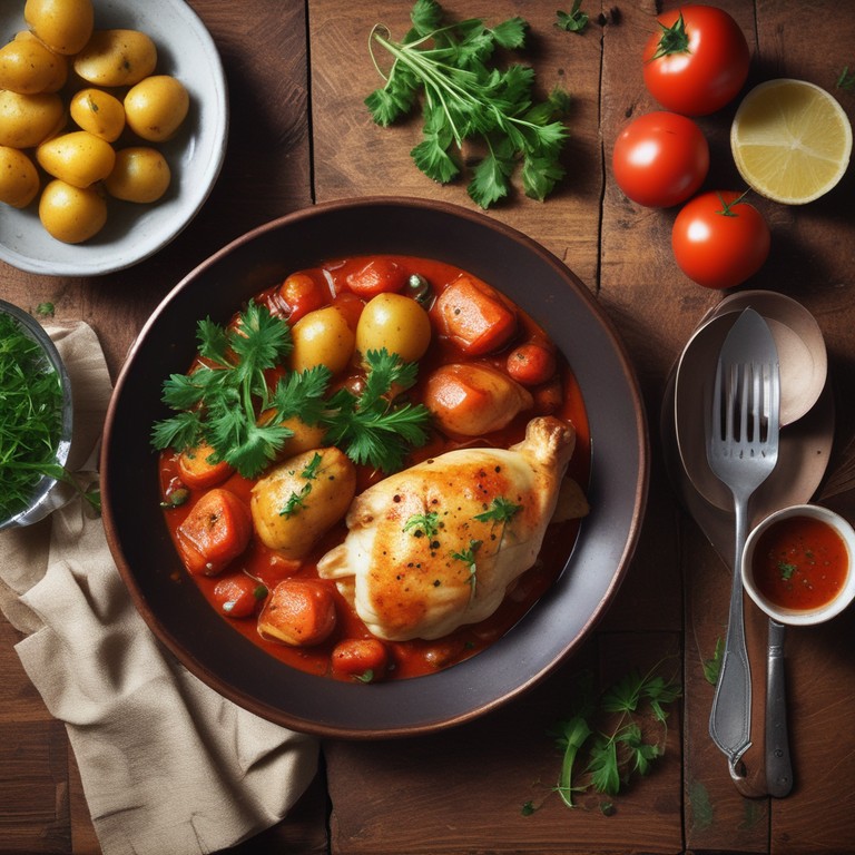 Uma receita saborosa de peito de frango cozido em molho de tomate, acompanhado de batatas macias, perfeita para um almoço em família.