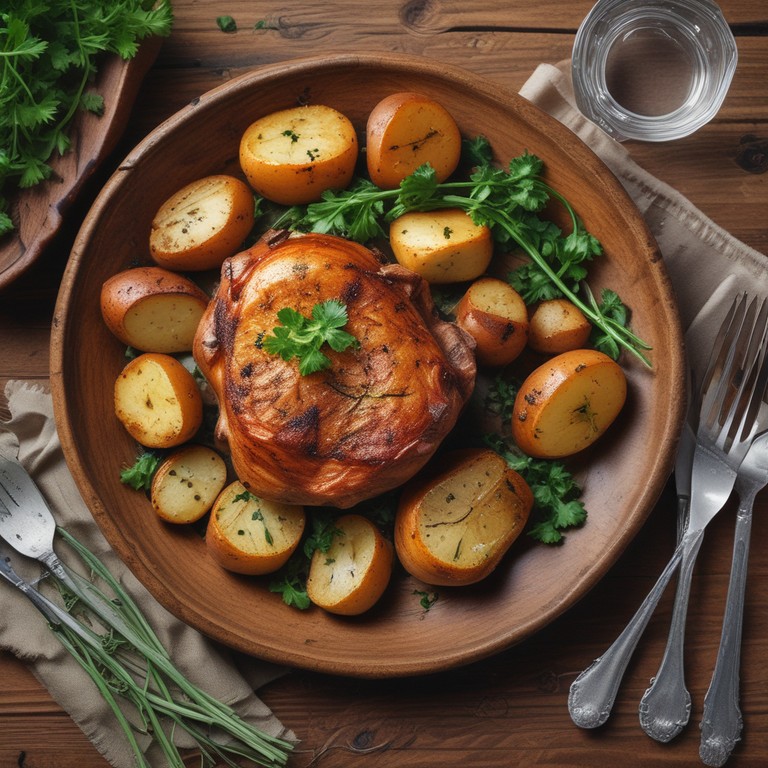 Uma combinação deliciosa de batatas rústicas crocantes e bifes de porco suculentos, perfeita para um jantar em família.